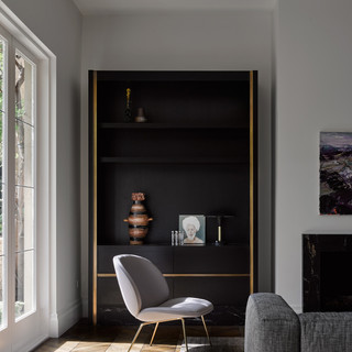 Sometimes it is easier to start from scratch—imagining a whole space and choosing every detail to serve a new creative vision. But Australian interior designer David Flack, founder and head of Flack Studio, decided to assign himself the challenge of retaining some beautiful, original elements of this 15-year-old, faux Georgian duplex located in the inner east Melbourne area. The herringbone parquet floors, solid panelled doors, 3.6-metre-high ceilings, charming mouldings and travertine bathroom tiles were preserved and combined with some graphic, new components.