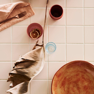 The central open kitchen with two pizza ovens and a fire pit anchors the space and invites guests to discover the three areas that radiate, offering impressive 50-metre ocean views. Adorned with a rattan ceiling and paved flooring, the restaurant is decorated with mint green chairs, terrazzo tables and plants, creating a fresh atmosphere. The colour scheme continues throughout the Beach Bar where pink and pistachio tables combine with timber benches. Underneath a white umbrella canopy, the outdoor Pavilion bar opens up to a beautiful panorama.